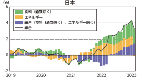 日本のインフレ率の推移。